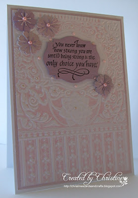 Now for my challenge this time I would like you to make the sentiment or quote the focal image on your project. Of course, you may use any other embellishments eg diecuts, flowers, ribbon, bows etc but I don't want to see any images. I really do love to use quotes and sentiments on my cards (so much so that a friend has christened me the Quote Queen) and I would love you to play along. I know some of you may find this a real challenge but it's good to get out of our comfort zone sometimes I think.